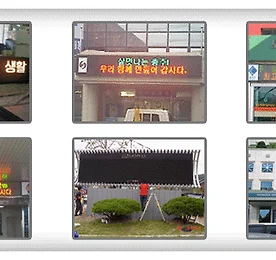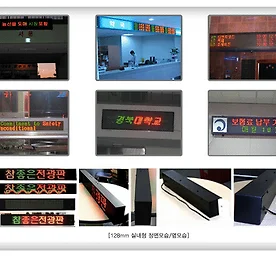 실내형 전광판 크기가 작으며 빛의 밝기가 비교적 약한 모듈을 조합하여 만드는 전광판이다. 광량이 낮은 실내나 햇빛이 비교적 적게 들어오는 곳에 설치된다. 매우 밝아야 하는 곳이나 적정 가시거리가 먼 환경에 설치하는 것이 좋으며 밝기를 최대한 낮추어 사용하는 것이 좋다. 프레임은 실내 인테리어 분위기에 맞추어 일반 알미늄프레임 대신 보다 고급스럽고 깔끔한 갈바 프레임이나 스텐프레임을 사용하는 것이 좋다. 특징 미려한 색상 SMD 제품 특성상 색상이 깔끔하여 고급스러운 느낌을 준다. 다양한 표현 글자당 속성적용, 깜빡이, 회전, 색상변화, 좌우 흐르기, 상하 문장이동, 레이져효과 등 백여 가지 효과 동작그림, 글자크기 두께조절, 다양한 기호, 영어, 일어, 한자 입력 가능 저렴한 유지비 24시간 사용 한달 ..