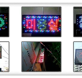 돌출형 전광판 돌출형 전광판은 가로형 전광판에 비해 좁은 면적에 설치가 용이하고 시야각을 확보할 수 있어 광고효과가 뛰어나다. 최근에는 다양한 표출색상이 가능하기 때문에 업종에 따른 선택의 폭이 넓어졌다. 대표적인 삼색RPG, 삼색RW는 테두리네온 및 풀네온을 추가할 수 있어 화려한 연출로 고객의 시선을 사로잡을 수 있다. 프레임은 양면돌출형 100mm 알미늄 프레임을 이용하며, 기본 아크릴 통방수를 원칙으로 한다. 특징 다양한 표현 글자당 속성적용, 깜빡이, 회전, 색상변화, 좌우 흐르기, 상하 문장이동, 레이져효과 등 백여 가지 효과 동작그림, 글자크기 두께조절, 다양한 기호, 영어, 일어, 한자 입력 가능 저렴한 유지비 24시간 사용 한달 전기 사용료 1500원 (1단 6열 기준) 편리한 사용법 *..